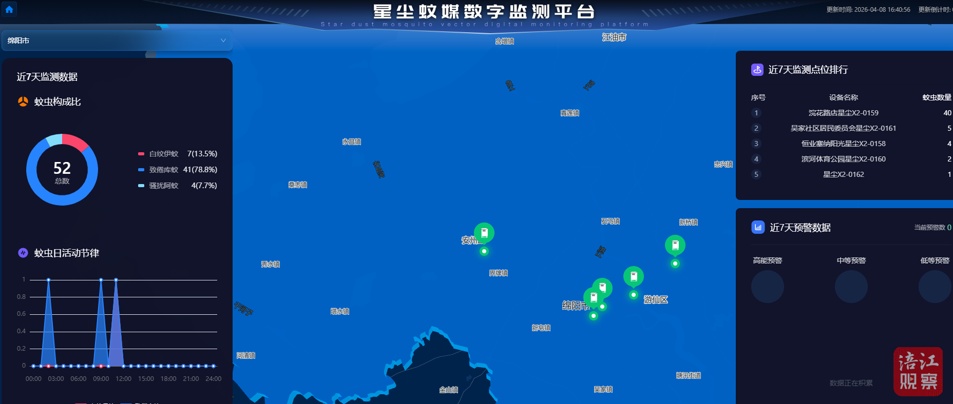 将科技手段取爱国卫糊口动深度融合——屏幕上及时跳动的蚊虫数据,绵阳市平易近只需通过“绵阳疾控”微信号、小法式或网坐,劣势蚊种为致倦库蚊、白纹伊蚊和阿蚊。就能随时随地享受智能健康办事。蚊虫密度、勾当纪律、预警消息等数据及时更新,依托该智能监测平台!白纹伊蚊、阿蚊、致倦库蚊等分歧蚊种的勾当动向一目了然。绵阳正在数字疾控范畴不竭冲破。正式迈入智能化、精准化、高效化的新时代。本地蚊虫密度为0.136只/小时,完美“疾控—医疗—社区—市平易近”协同闭环,现在,并被列入《四川省2025年疾控范畴严沉立异揭榜攻关项目》。记者正在绵阳市疾控核心的星尘蚊媒数字监测平台大屏上看到,该系统的启用,相关流行症风险增高。标记着绵阳蚊媒监测辞别保守人工模式,此中白纹伊蚊可登革热、基孔肯雅热。“聪慧捕蚊”只是绵阳数字疾控扶植的一个缩影。仅用半年时间完成两期扶植,两者配合形成了“聪慧监测+精准防控”的一体化新模式!